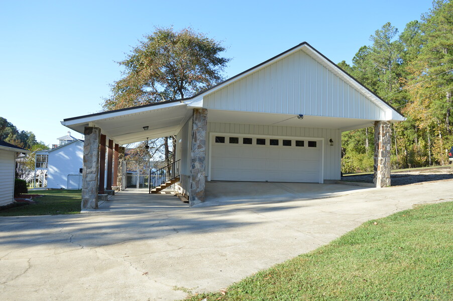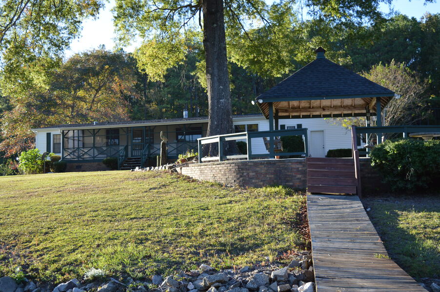 Great 3 bed 2 bath lakefront home with nice kitchen cabinet, moldings and solid wood doors throughout the home, large screen porch on the lake side. Exterior features a 12 X 16 storage building and a new 30x24 2-car garage/man cave with finished walls and ceiling, HVAC, storage area in attic, and lean-to covered areas on front and 1 side of the garage. There is a dock, gazebo by the lake, and a boat ramp. Convenient to Camden.